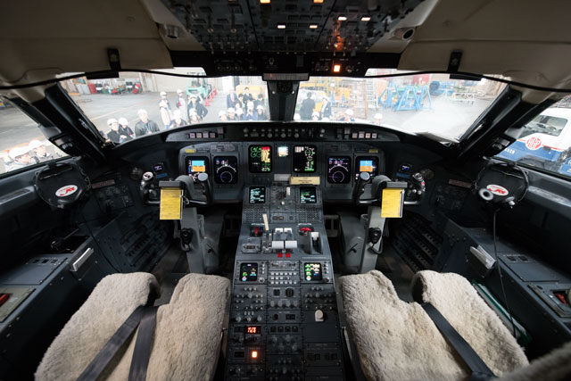 ジェイエアのCRJ200のコックピット=17年11月26日 PHOTO: Tadayuki YOSHIKAWA/Aviation Wire