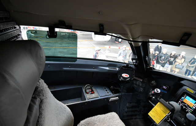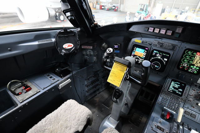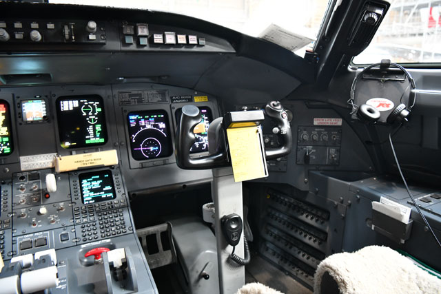 ジェイエアのCRJ200の副操縦士席=17年11月26日 PHOTO: Tadayuki YOSHIKAWA/Aviation Wire