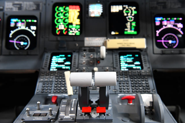ジェイエアのCRJ200のスラストレバー=17年11月26日 PHOTO: Tadayuki YOSHIKAWA/Aviation Wire