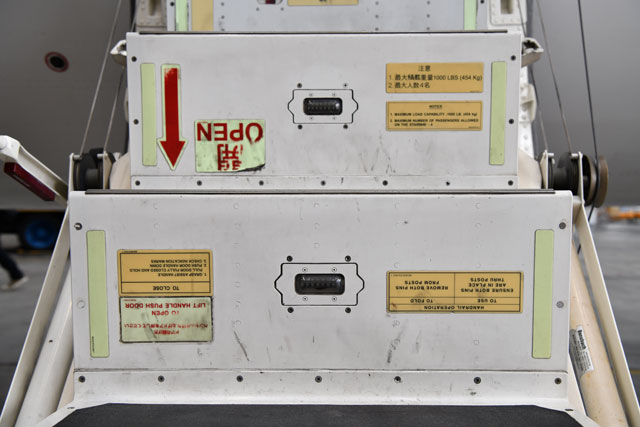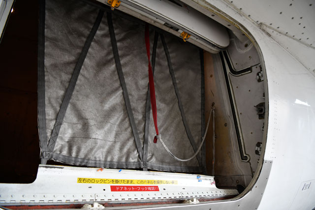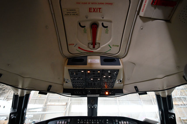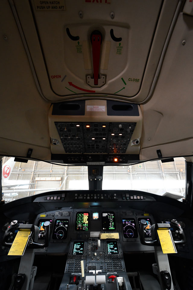 ジェイエアのCRJ200のコックピット天井に設けられた非常用ハッチ=17年11月26日 PHOTO: Tadayuki YOSHIKAWA/Aviation Wire