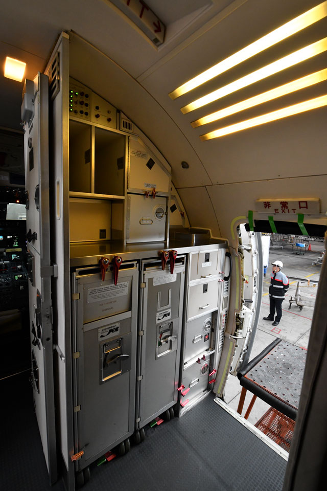 ジェイエアのCRJ200のギャレー=17年11月26日 PHOTO: Tadayuki YOSHIKAWA/Aviation Wire