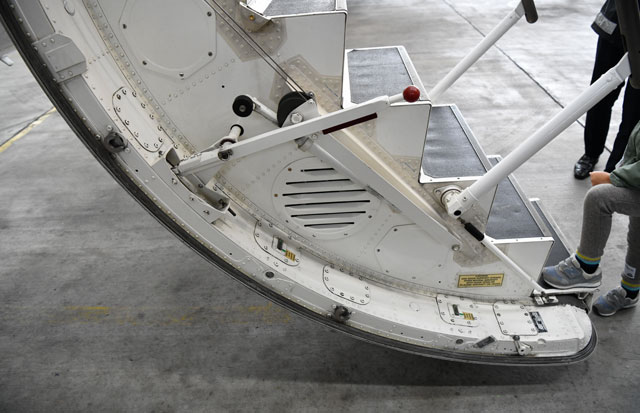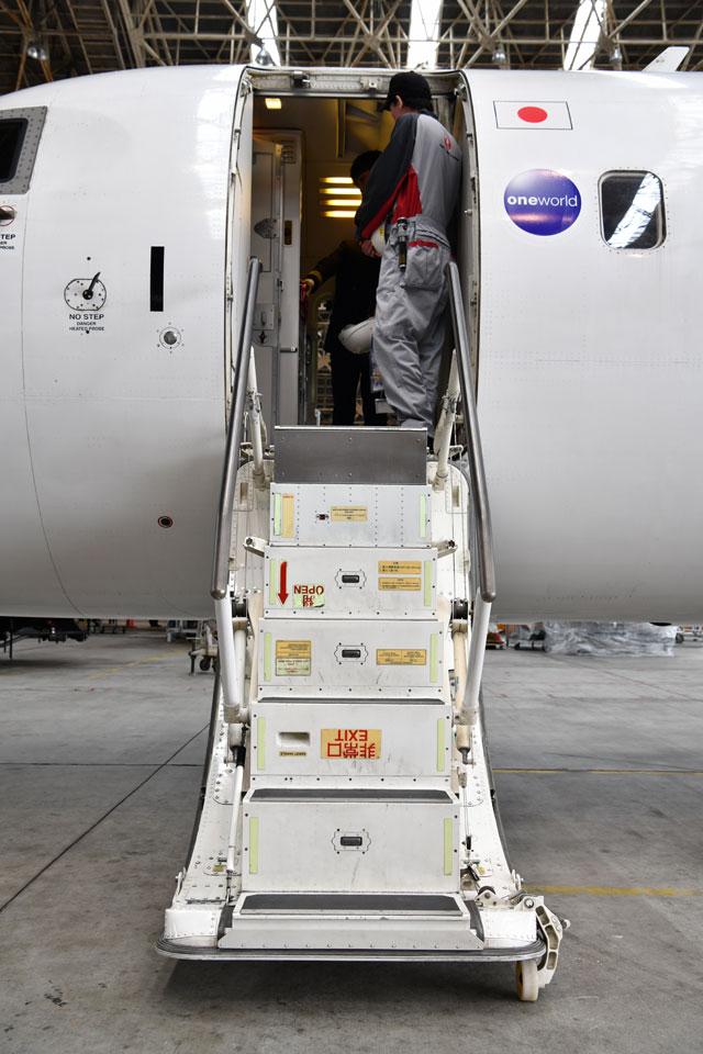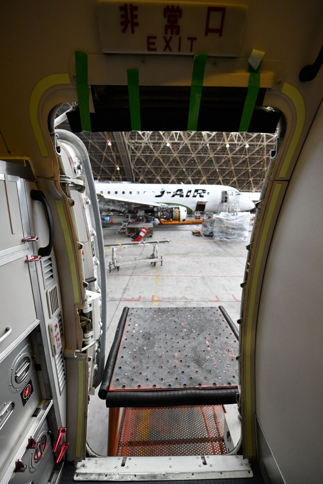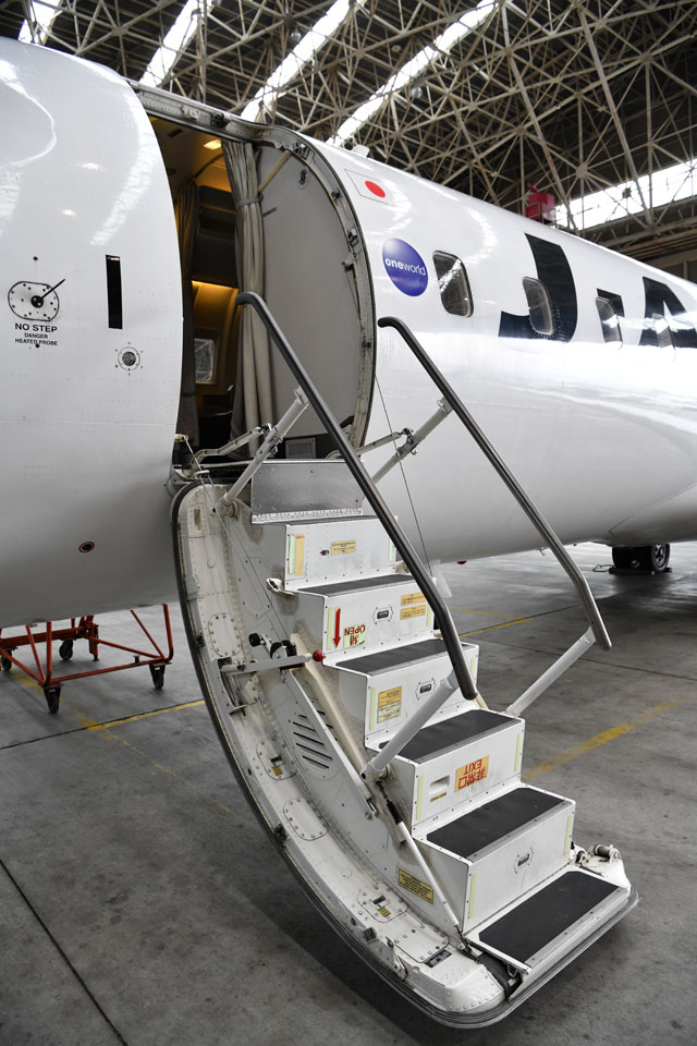 乗降用ステップになるジェイエアのCRJ200の前方左側ドア=17年11月26日 PHOTO: Tadayuki YOSHIKAWA/Aviation Wire