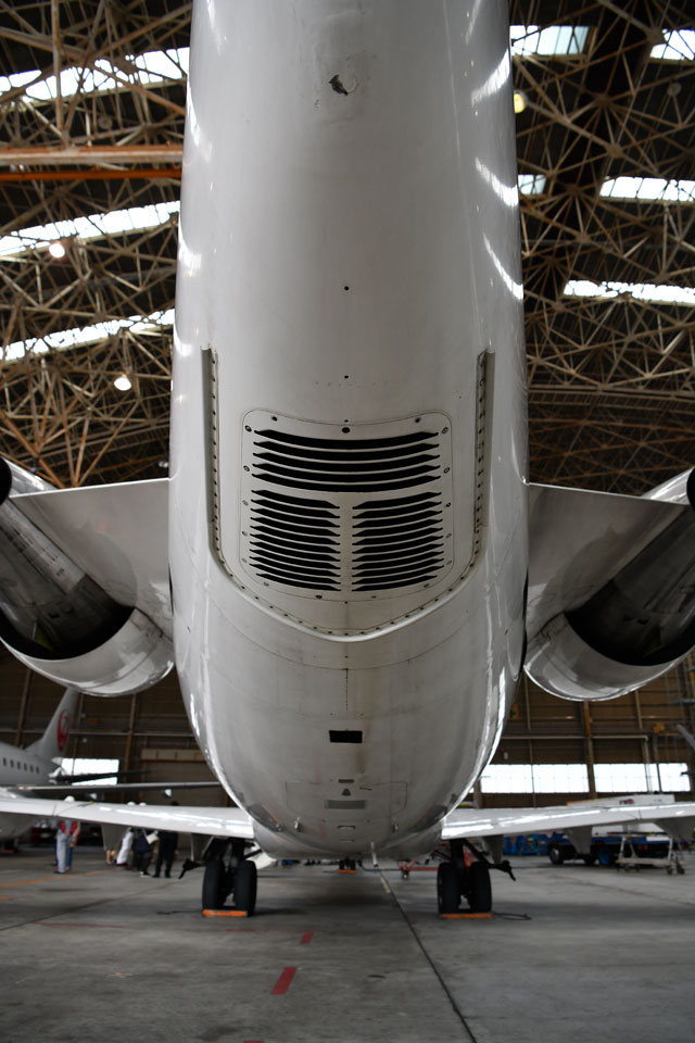 ジェイエアのCRJ200の右側エンジンとAPUの排気口=17年11月26日 PHOTO: Tadayuki YOSHIKAWA/Aviation Wire
