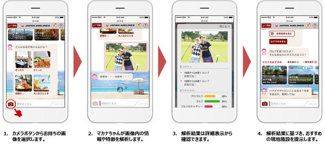 日本航空(JAL/JL、9201)と日本アイ・ビー・エム(IBM)は12月5日、JALのウェブサイト上でハワイのおすすめスポットをチャットで紹介するバーチャルアシスタント「マカナちゃん」の機能を強化したと発表した。IBMの質問応答システム「ワトソン」の画像認識機能を新たに活用し、画像内に含まれている情報や特徴から、おすすめスポットを提案する。