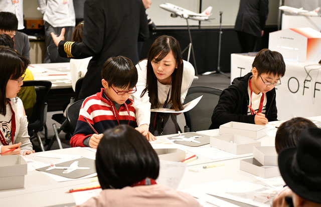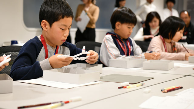 JAL STEAM SCHOOLで新しい飛行機の形を考える子供たち=PHOTO: Tadayuki YOSHIKAWA/Aviation Wire