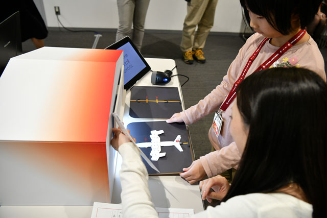 飛行機の性能を検証する「格納庫」も、実物のように機体が入っていく光景をイメージしたという。「うまく飛んでばかりでも、難しすぎても面白くない。アートをどう入れるかもポイントで、小技も使っているんですよ」(阿部さん)と楽しそうだ。