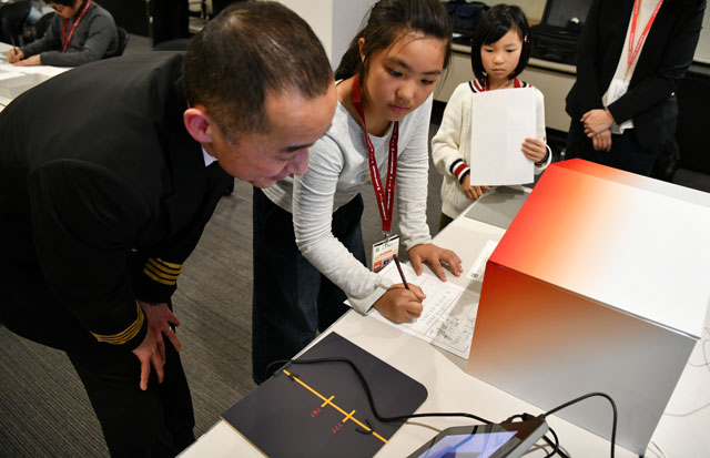 JAL STEAM SCHOOLで翼型を考える女の子=PHOTO: Tadayuki YOSHIKAWA/Aviation Wire