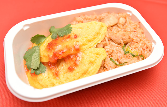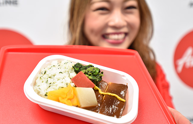 また、25日からは「スパイシーチキンチャーハンとタイ風オムレツ」も提供。温かいメニューは、きしめんをカルボナーラ風にアレンジした「きしボナーラ」と、ココナッツミルクで米を炊いたマレーシアの「ナシレマ」、エアアジアのロゴをデザインした「REDパンケーキ」の3種類も継続して提供し、計5種類を引き続き用意する。