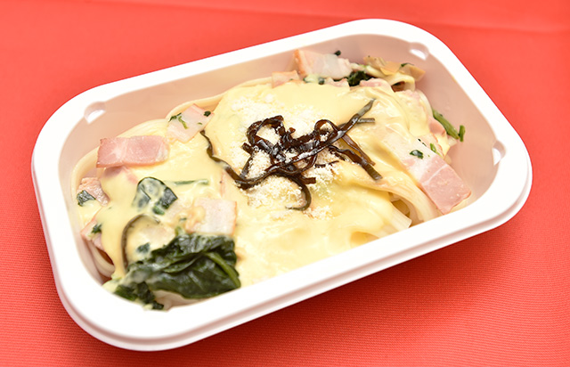 エアアジア・ジャパンが引き続き提供する機内食「きしボナーラ」=18年3月8日 PHOTO: Yusuke KOHASE/Aviation Wire