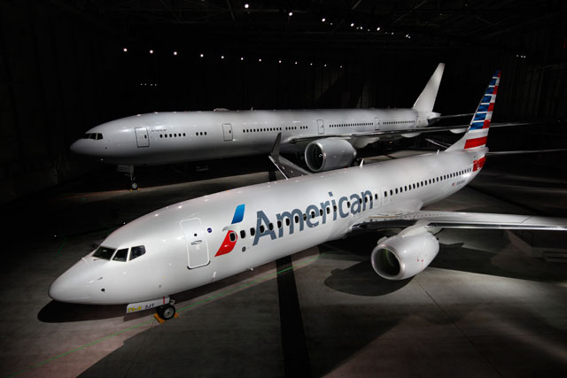 新塗装を施したアメリカン航空の737-800と塗装前の777-300ER(同社資料から)