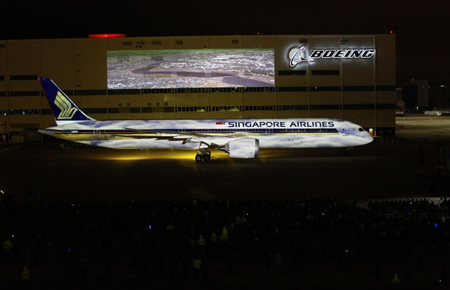 シンガポール航空へ初納入された787-10初号機(ボーイング提供)