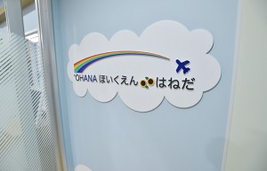 玄関に掲出する「’OHANA ほいくえん はねだ」のロゴ=18年4月1日 PHOTO: Yusuke KOHASE/Aviation Wire