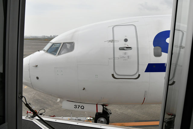 取材当日の4月6日は、副操縦士として4日に初フライトしてから3日目。ベヒシュタインさんは、羽田を午前11時13分に出発した福岡行きBC009便(737-800、登録番号JA737Q)と、福岡午後1時54分発の羽田行きBC012便(同)に、髙橋正博機長と乗務した。風が強かったが、大きな遅延もなくフライトを終えた。