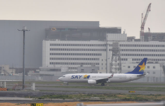 羽田に着陸するスカイマークの福岡発012便=18年4月6日 PHOTO: Tadayuki YOSHIKAWA/Aviation Wire
