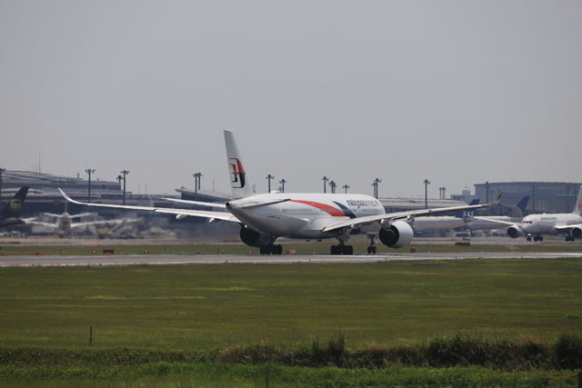 成田空港の滑走路へ進入するマレーシア航空のA350-900日本発初便のMH89便=18年5月6日 PHOTO: Youichi KOKUBO/Aviation Wire
