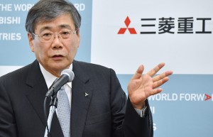 18年3月期決算を発表する三菱重工の宮永俊一社長=18年5月8日 PHOTO: Yusuke KOHASE/Aviation Wire