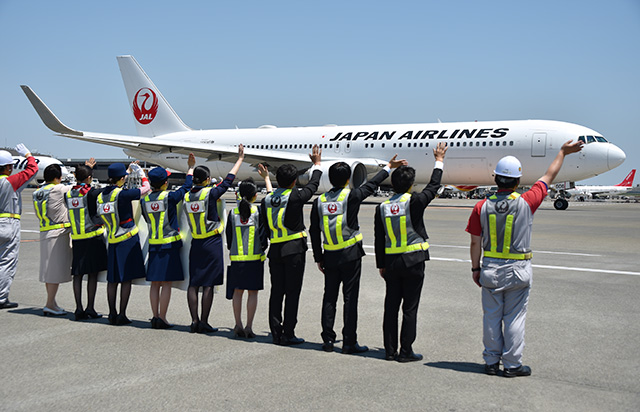 成田発グアム行きJL941便を見送るJALのスタッフ=18年5月22日 PHOTO: Yusuke KOHASE/Aviation Wire