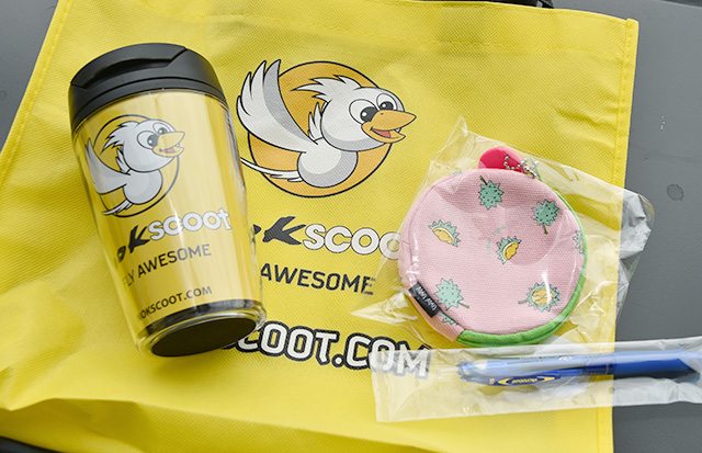 成田空港でノックスクートのバンコク行きXW101便初便の乗客に配付した記念品=18年6月1日 PHOTO: Yusuke KOHASE/Aviation Wire