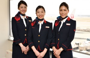 インタビューしたJAL客室乗務員の(左から)上松さん、飯塚さん、秋山さん=PHOTO: Tadayuki YOSHIKAWA/Aviation Wire