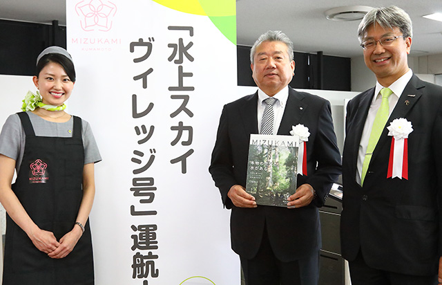村には日本三急流の1つ、球磨川の源流がある。熊本空港での就航記念イベントに参加した水上村の中嶽弘継村長は、「冷たくて清らかな水」と自然をアピール。また村内にある、標高1000メートルの九州中央山地国定公園に、クロスカントリーのコース「水上スカイヴィレッジ」を2017年5月に整備。中嶽村長は「スポーツ交流をすすめる」と展望を語った。
