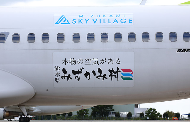 ソラシドエア(SNJ/6J)は、熊本県水上村をピーアールするデカール機「水上スカイヴィレッジ号」(ボーイング737-800型機、登録番号JA806X)の運航を、8月1日に開始した。ソラシドの全路線で約1年間運航し、水上村の知名度向上を図る。