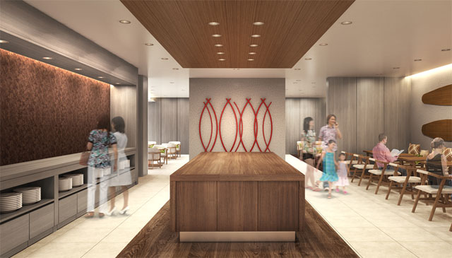 JALがホノルルにオープンするサクララウンジ・ハレのダイニングエリアのイメージイラスト(JALのサイトから)