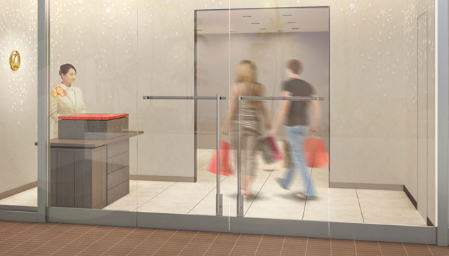 JALがホノルルにオープンするサクララウンジ・ハレのエントランスのイメージイラスト(JALのサイトから)