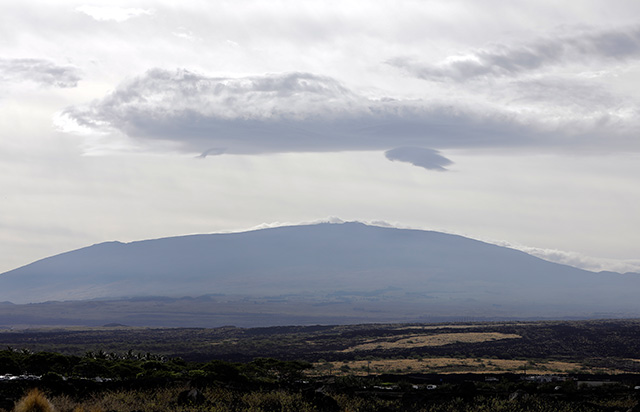ハワイ島のほぼ中心にそびえるマウナケア山=18年8月22日 PHOTO: Kiyoshi OTA/Aviation Wire