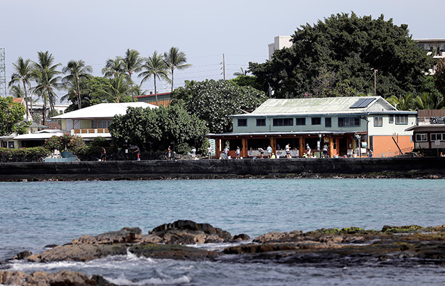 ハワイ島のカイルア・コナ中心部で釣りを楽しむ人々=18年8月22日 PHOTO: Kiyoshi OTA/Aviation Wire