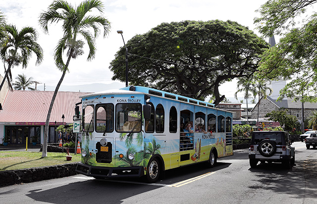 ハワイ島カイルア・コナ中心部を走るトロリー=18年8月22日 PHOTO: Kiyoshi OTA/Aviation Wire