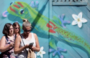 ハワイ島カイルア・コナ中心部でスマートフォンをチェックする人=18年8月22日 PHOTO: Kiyoshi OTA/Aviation Wire