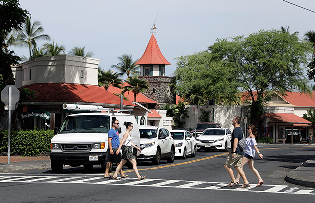 人々や車が行き交うハワイ島のカイルア・コナ中心部=18年8月22日 PHOTO: Kiyoshi OTA/Aviation Wire