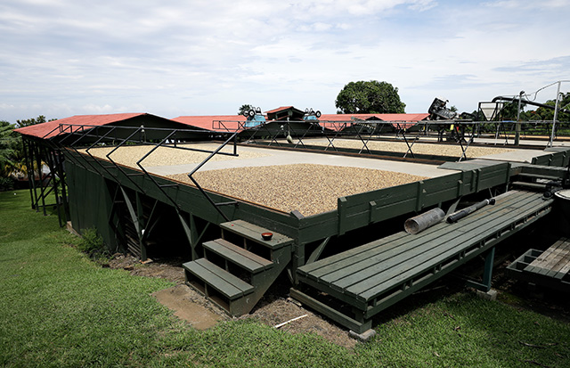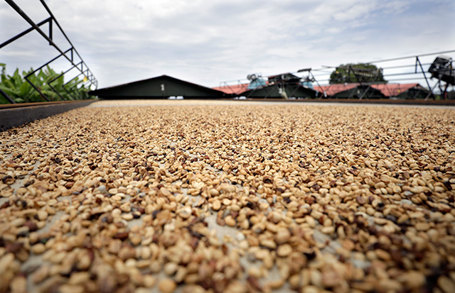 ハワイ島のグリーンウェルコーヒーファームで天日干しされるコーヒー豆=18年8月22日 PHOTO: Kiyoshi OTA/Aviation Wire
