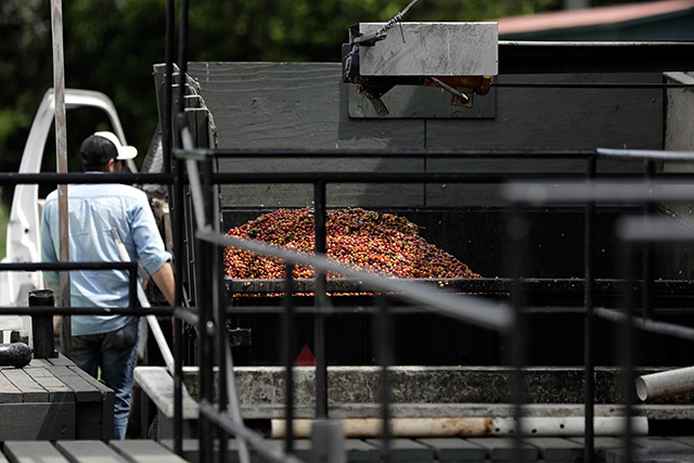 ハワイ島のグリーンウェルコーヒーファームで収穫されたコーヒー豆=18年8月22日 PHOTO: Kiyoshi OTA/Aviation Wire