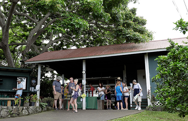 ハワイ島のグリーンウェルコーヒーファームを訪れる見学者=18年8月22日 PHOTO: Kiyoshi OTA/Aviation Wire