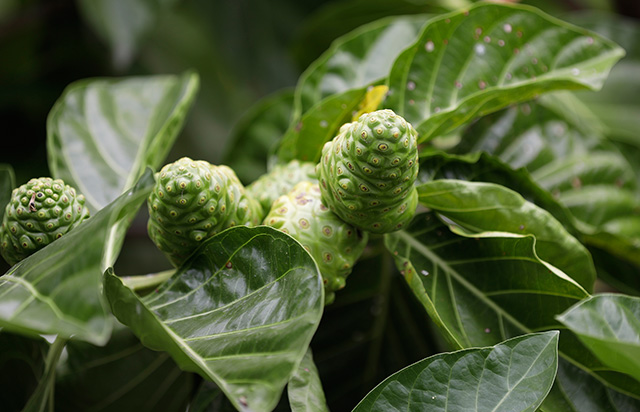 ハワイ島のプウホヌア・オ・ホナウナウ国立歴史公園で実をつける「ノニ」=18年8月22日 PHOTO: Kiyoshi OTA/Aviation Wire