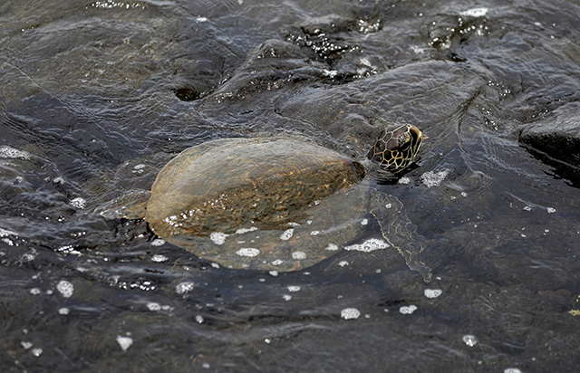 ハワイ島のプウホヌア・オ・ホナウナウ国立歴史公園内を泳ぐウミガメ=18年8月22日 PHOTO: Kiyoshi OTA/Aviation Wire