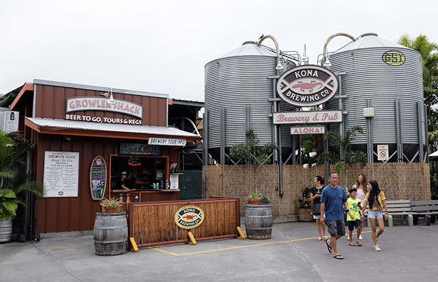 今回、空港近くにあるカイルア・コナ地区を中心に訪れた。空港から南におよそ11キロ進むと、カイルア・コナに到着する。中心部で地ビールを製造する「コナ・ブリューイング・パブ」では、観光客や地元民と見られる人々が、ビールを楽しんでいた。