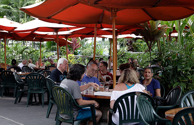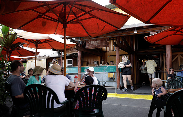 ハワイ島カイルア・コナ中心部のレストランで食事を楽しむ人々=18年8月22日 PHOTO: Kiyoshi OTA/Aviation Wire