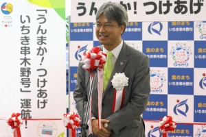 鹿児島空港で開かれた就航記念イベントに出席した、いちき串木野市の田畑誠一市長は、市内で作られるさつま揚げにふれ、「甘くふわふわした食感が特徴。一度食べるとやみつきになる」とアピールした。