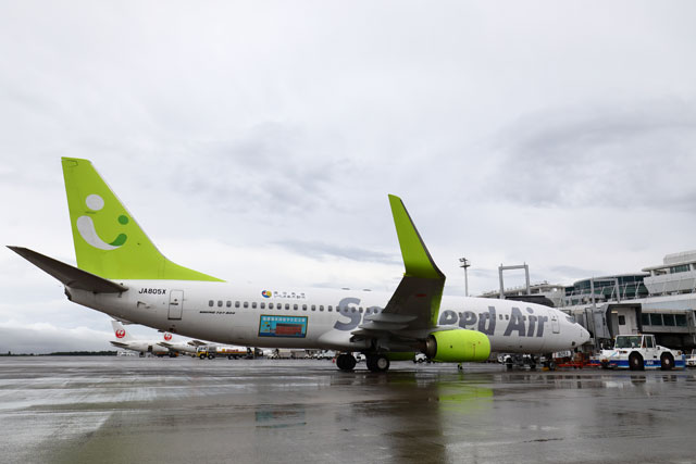 鹿児島空港で出発を待つソラシドのいちき串木野号=18年9月1日 PHOTO: Masahiro SATO/Aviation Wire