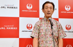 ハワイ州観光局のエリック高畑局長は「ハワイには8つ島があるので、8つのサービスなのではないか」とJALの新サービスに触れ、「現在ハワイ島の火山噴火は止まっており、ハワイは大丈夫だ。貿易風が毎日吹いているので、“自然の換気扇”のようで、空気をきれいにしてくれる。ハワイ島はアクティビティもたくさんあるので、ぜひ訪れて欲しい」と呼びかけた。