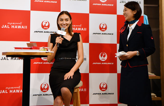 ハワイ島出身でJALハワイ路線のイメージキャラクターを務めるモデルの長谷川潤さんは、「子供を連れていくとアーリーチェックインはうれしい。(目的地に)着いたらシャワーも浴びたい」とアーリーチェックインを評価。ハワイ島については、「大自然が本当に美しく、毎回感動する。星空や夕日がきれいで、ドライブは気候の変化がみられるので面白い」と魅力を語った。