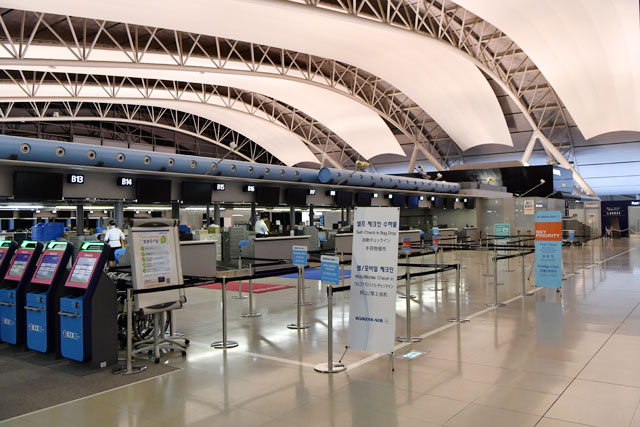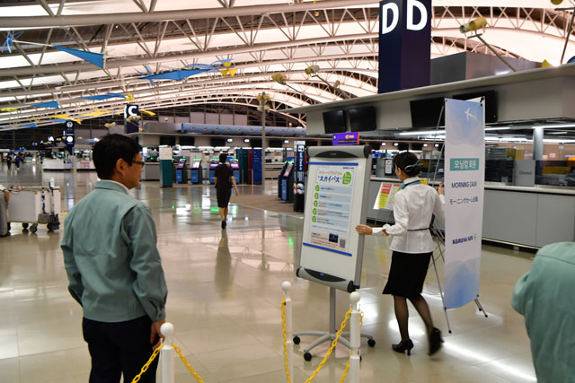 北エリアでこれまで閉鎖されていた、AからDまでのカウンターのうち、大韓航空(KAL/KE)が利用するBカウンターと、キャセイパシフィック航空(CPA/CX)が使うCカウンターでは、20日は係員が案内の看板を準備するなど、再開に向けた準備が進んでいた。