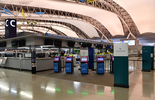 関空第1ターミナル北エリアで再開準備を進めるキャセイパシフィック航空の係員=18年9月20日 PHOTO: Tadayuki YOSHIKAWA/Aviation Wire
