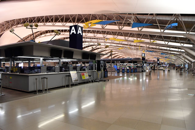 KAPによると、20日はT1の国際線が36社61便123発着で、夏ダイヤピーク時の便数と比べて39%、T1の国内線は6社38便77発着で同90%となっている。一方、LCCのピーチ・アビエーション(APJ/MM)と春秋航空(CQH/9C)が乗り入れる第2ターミナル(T2)は、すでに100%の便数に回復済み。関空全体では、20日はピーク時の便数の57%にあたる136便274発着となった。