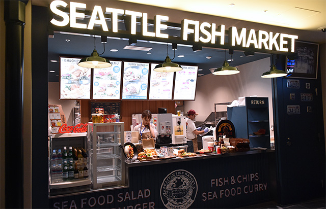 フィッシュ&チップスなどシーフード料理を提供する「Seattle Fish Market」=18年10月5日 PHOTO: Yusuke KOHASE/Aviation Wire