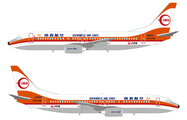 今回再現するのは1978年12月に同社初のジェット旅客機ボーイング737-200型機就航と同時に導入された塗装で、明るいオレンジ色の流線型ストライプが入ったデザインが特徴。1993年に現社名へ変更するまで用いられた。