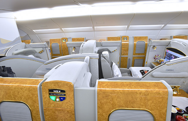 エミレーツ航空A380のファーストクラス=18年10月29日 PHOTO: Yusuke KOHASE/Aviation Wire