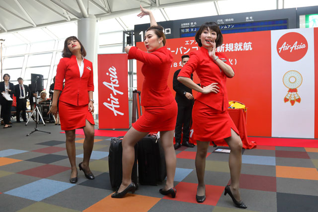 中部空港でダンスを披露するタイ・エアアジアXの客室乗務員=18年10月30日 PHOTO: Masahiro SATO/Aviation Wire